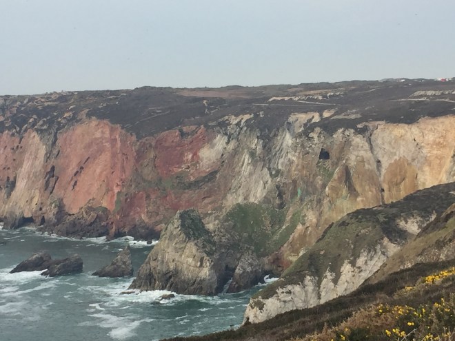 As it got later and later and at around the 32k mark the temperature mercifully fell, but nonetheless it became harder to appreciate (as opposed merely to notice) the landscape we were walking through: sea arches and other interesting rock formations at the edge of sea and land, a rainbow of coloured ores on cliff-faces and a particularly friable ex-mining area which looked like a set from Dr Who.