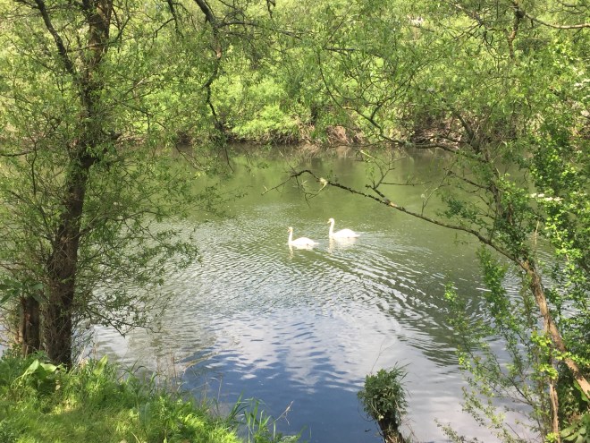 Because we have walked this path before, we decided to come down off the high Dyke Path and this time take the low-level Wye Valley route which meanders enjoyably along a mostly wide grassy bank following the course of the river because it was new to us. The sallows and alders, the swans and the ducks and the occasional cormorant, the salmon fishermen (mostly spinning but we admired one fly-fisher casting expertly at the end of the day), all were set off perfectly by the wooded slopes and the slow-moving wide green water.
