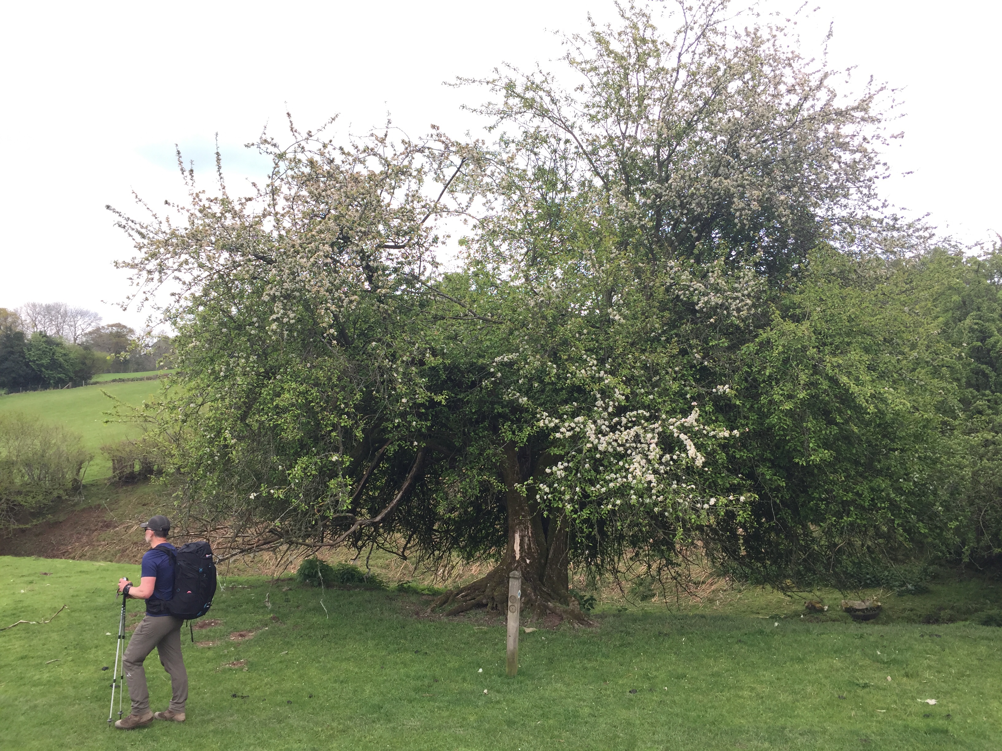 We powered along the ridge, loving its soft turf, carried along on a tidal wave of larksong, and dropping down off the end of the hill to see the smiling faces of our friends of two decades Tim and Susie, who were to be the companions for the rest of today’s walk. Before setting off, we all treated ourselves to a cream tea in the tea rooms of Hergest Croft, a stunning garden which at this time of year specialises in glorious azaleas.