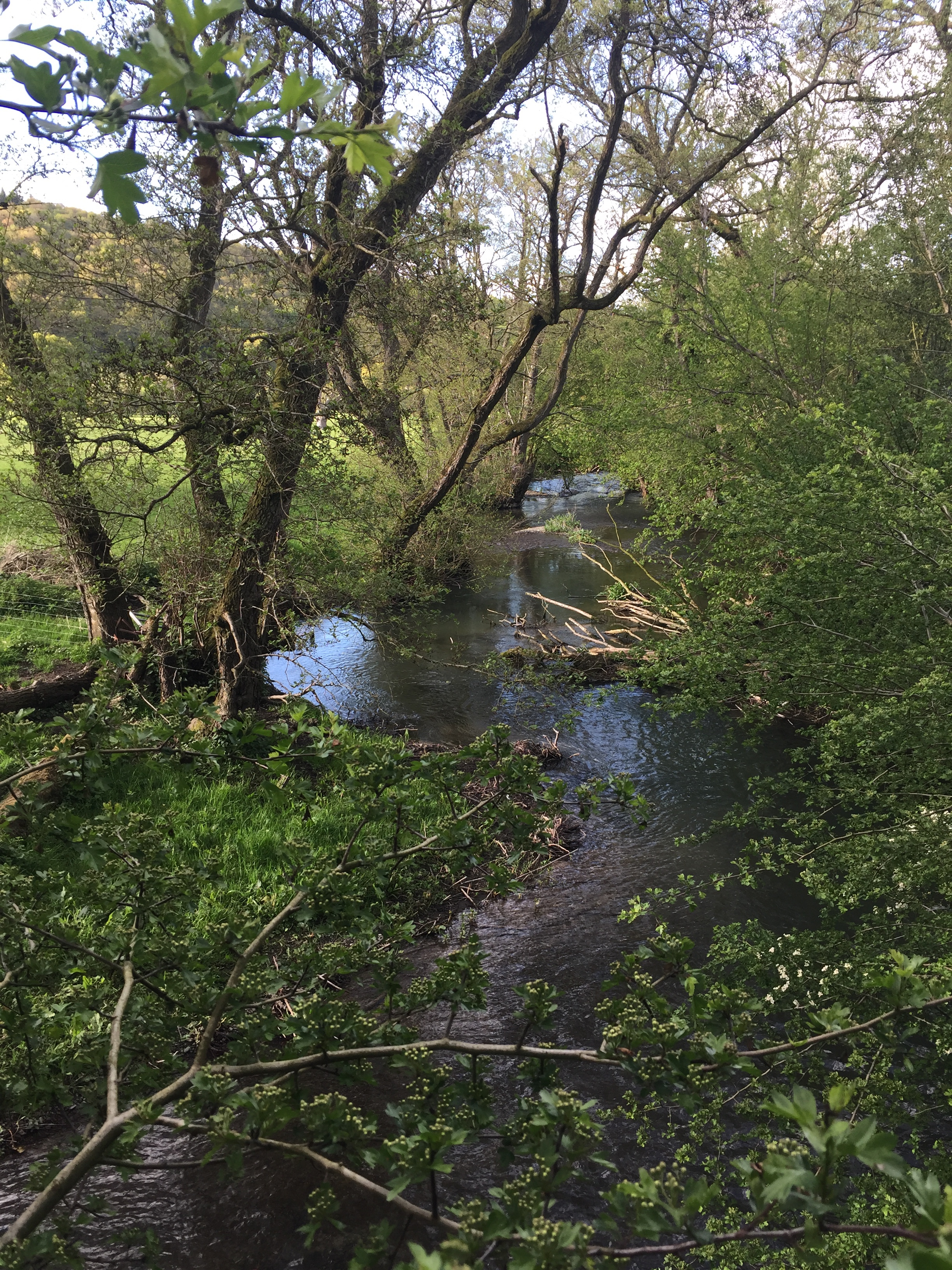But we were with friends, and the kilometres passed joyfully, chatting about every subject under the sun, and pausing to admire an extant stretch of Offa’s Dyke before dropping down into the wooded bluebell valleys where the Mortimer Trail winds.