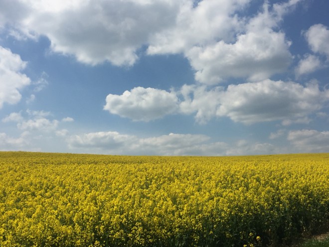 The path here follows the edge of huge Prairie-like fields of crops, and it seems to take forever to get anywhere. It’s possibly the low point of the whole trail. – Andy Robinson, The End-to-End Trail