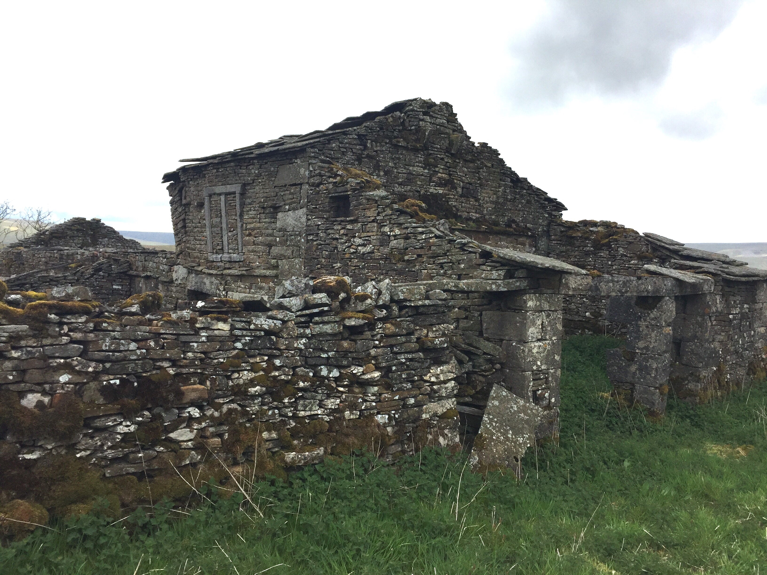 When the old road was in use they must have seemed less remote than they do now, and we lingered a little to admire the stonework: the stone mullioned windows, the lintels, door-frames and other details which suggested what fine farm buildings they must once have been. In essence and in character, they did not feel so very different from the excavated neolithic stone dwellings at Skara Brae in the Orkneys. Homes need doors, windows, shelves… and if the material to hand is stone, they must tend to look and feel the same, though thousands of years of human development separates them.