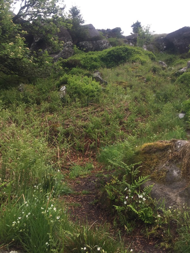 The path climbed higher and higher, narrowing at times and picking its way through bracken, bilberry and boulders so that we had to abandon our poles for pulling ourselves up with our hands in places.