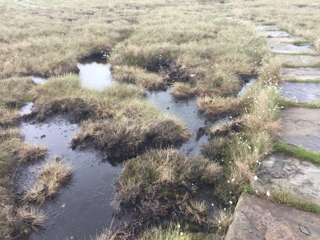 And the typical Pennine Way slabs, which we had encountered as we joined the long distance path four hundred kilometres away south, had also been laid across black peat bogs.