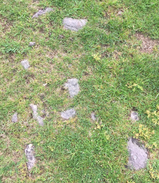 The andesitic cobbles which lay under the turf were visible in places and markedly worked and smooth on one side, in contrast to the blocky angular rocks in the dry-stone walls. It felt comfortable stepping on them: our feet rolled over them naturally, and we could imagine how at the margin they would help on a long march. Asphalt is smoother but each cobble provides a slight forward roll.