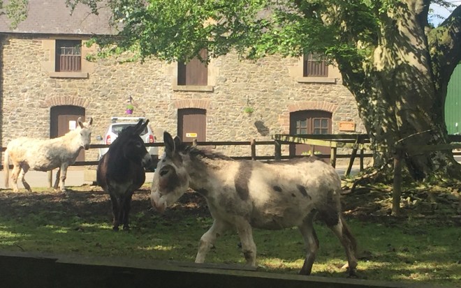 In any case, the countryside our route took us over today from Innerleithen was still sparsely populated, except for the old urban centre of Peebles, even if much of the drove road itself was old hardcore track. The A72 which follows the Tweed river speeds traffic from Innerleithen to Peebles and beyond, but we took the much quieter and more scenic B-road up the Tweed valley, past the echoes of old farming and industrial practices visible in the Kailzie stables donkeys