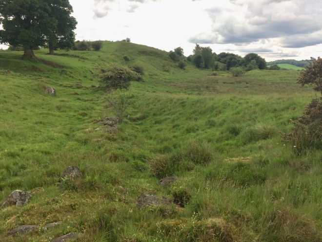 Within a generation the forces had had to fall back to Hadrian’s wall, but the gigantic dyke and ditch ramparts were in some ways even more impressive than those along the section of Hadrian’s wall which we saw, although nearly nothing of the turf wall construction remains. What there was is buried under bracken.