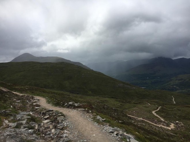 Once we had recovered our breath and our composure, we took the long, snaking path north-west towards Ben Nevis, into the depths of this astounding perspective. Powerful showers were still blowing in, but they missed us entirely.