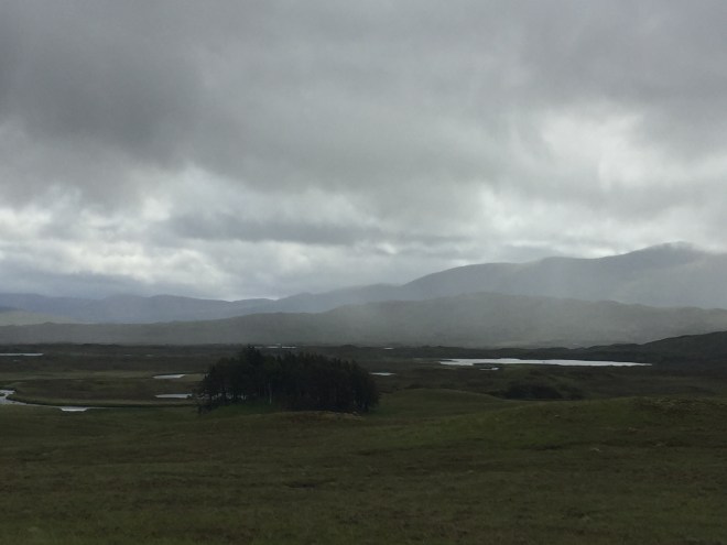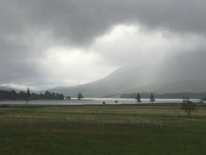 The cloudscapes were wild and dramatic, creating constantly-changing light effects across Loch Tulla, straight out of the Romantic imagination, light driving down through veils of misty rain and picking out the simplified outlines of trees and hills, whilst emphasising depth.