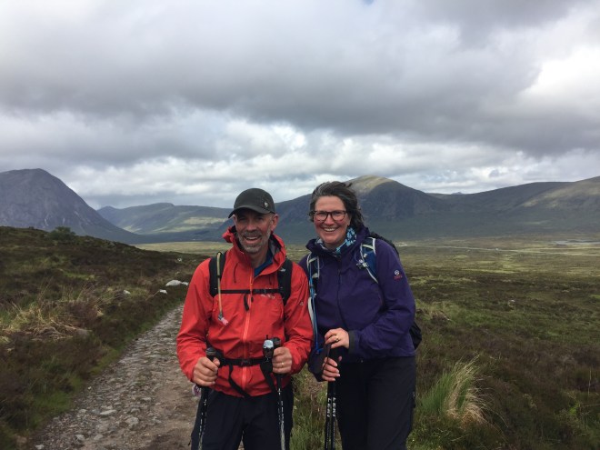 Wade’s military road starts to climb here, a zig-zag path known as the Devil’s Staircase, up to the col between Stob Mhic Mhartuin and Beinn Bheag. At 548m it is the highest point on the West Highland Way. Andy Robinson does note that by the fifth day of walking from Milngarvie, those hiking the WHW to Fort William will still find the climb quite a challenging pull but that once you have done the South West Coast stage from Boscastle to Bude, nothing on the West Highland Way presents a comparable obstacle. All three of us certainly found that we had more than enough puff to enjoy the spectacular views back into Glencoe.
