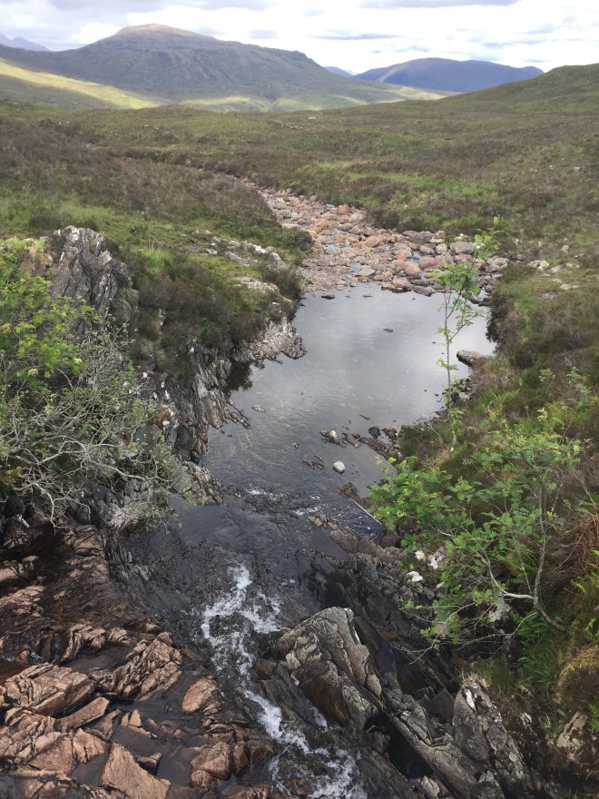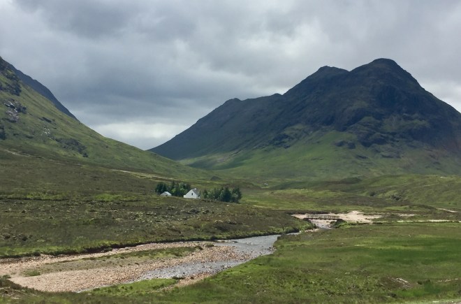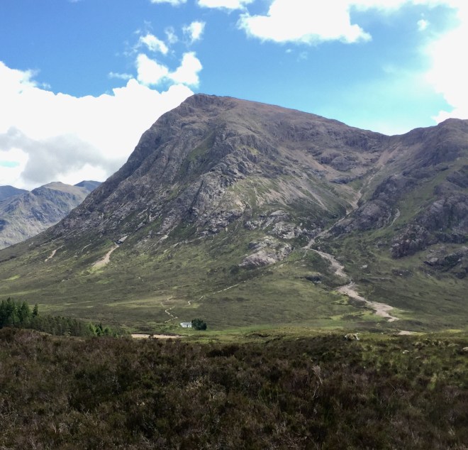 About an hour’s walk down the glen the lone homestead of Altnafeadh emphasises the insignificance of the human scale to the incomprehensibly vast geological masses amongst which the building lies.