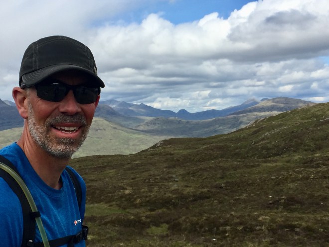 Where I had been overwhelmed by my first view of the mouth of Glen Coe, Stephen was profoundly moved by the panorama of hills to the north as we came up over the edge of the col: Ben Nevis (the top shrouded in cloud),