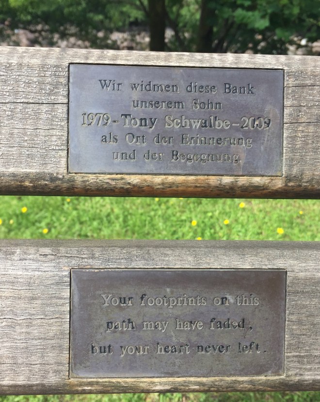 The spirit of the place was summed up by the inscription in German and English on a memorial bench, as a place of remembrance and inspiration.