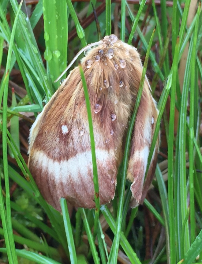 On the regen path we came across the Russian invader the Pine-tree lappet moth, the caterpillars of which (and the heather was infested with them up on the hillside) are devastating pine forests in Scotland.