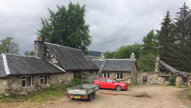 Down in Garrygoualach a beautiful old steading was being restored, together with a stunning new-build, and what looked like a very high spec sweat lodge amongst the trees. We were back in the inhabited world.