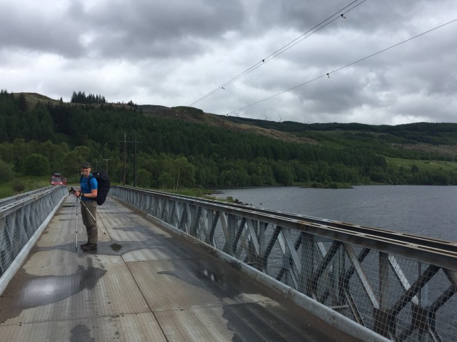 Further on, the track met another which led swiftly to a bridge. A beautiful, steel, sturdy bridge over the narrowest point of Loch Garry … and finally we had crossed to the North Shore.