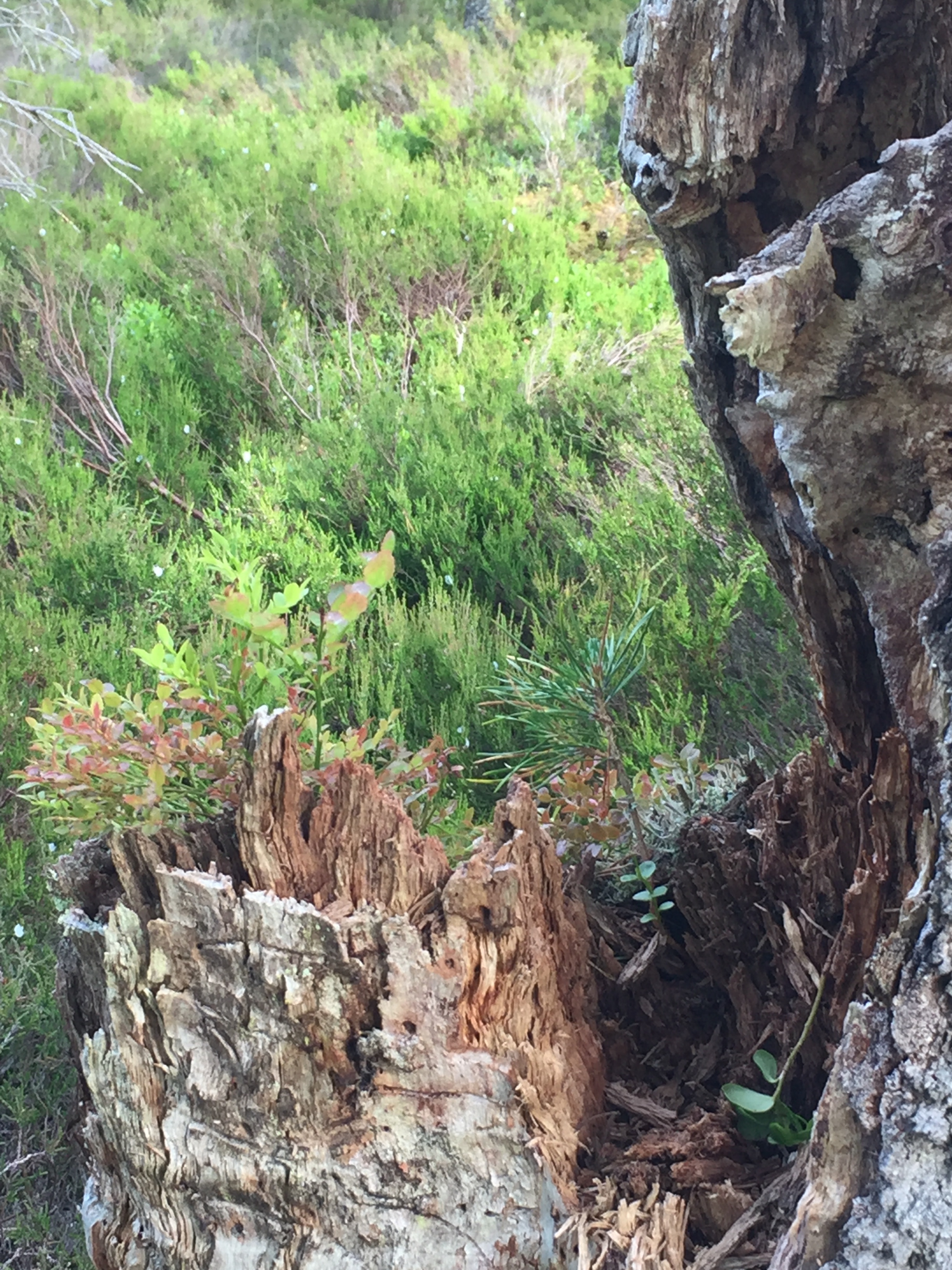 The impetus to grow, to find a nurturing substrate, led to many plants scrambling on top of each other to get a foothold; tree trunks living or dead turned into gardens for tiny saplings of Scots pine, nascent bilberry bushes and ferns.
