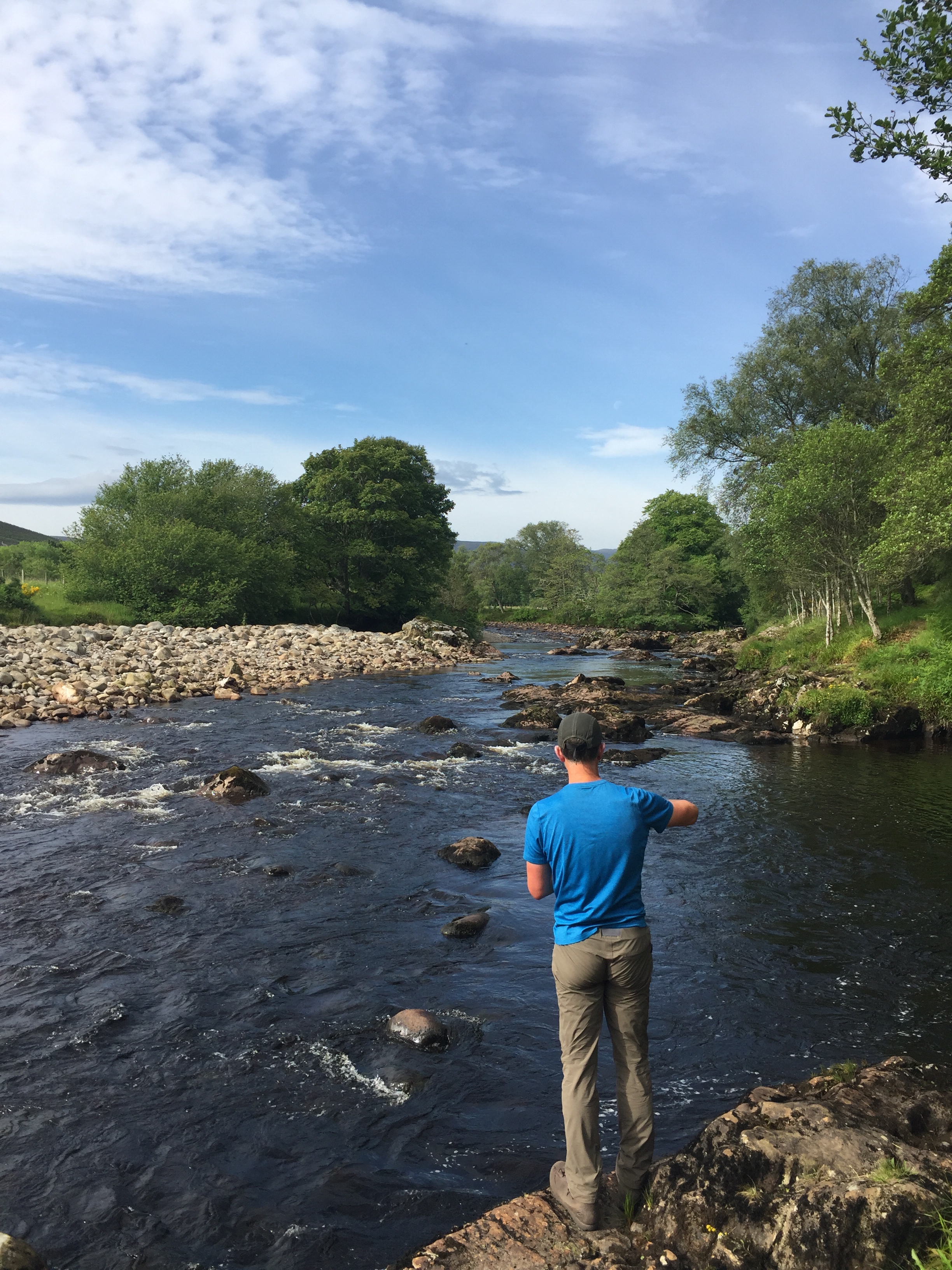 It was by now getting hot and airless. There were no footpath options but we decided to take the B-road from Invershin towards Lairg as being quieter and possibly scenic, as it passed the Falls of Shin on the way north, even though it was a couple of kilometres extra distance.