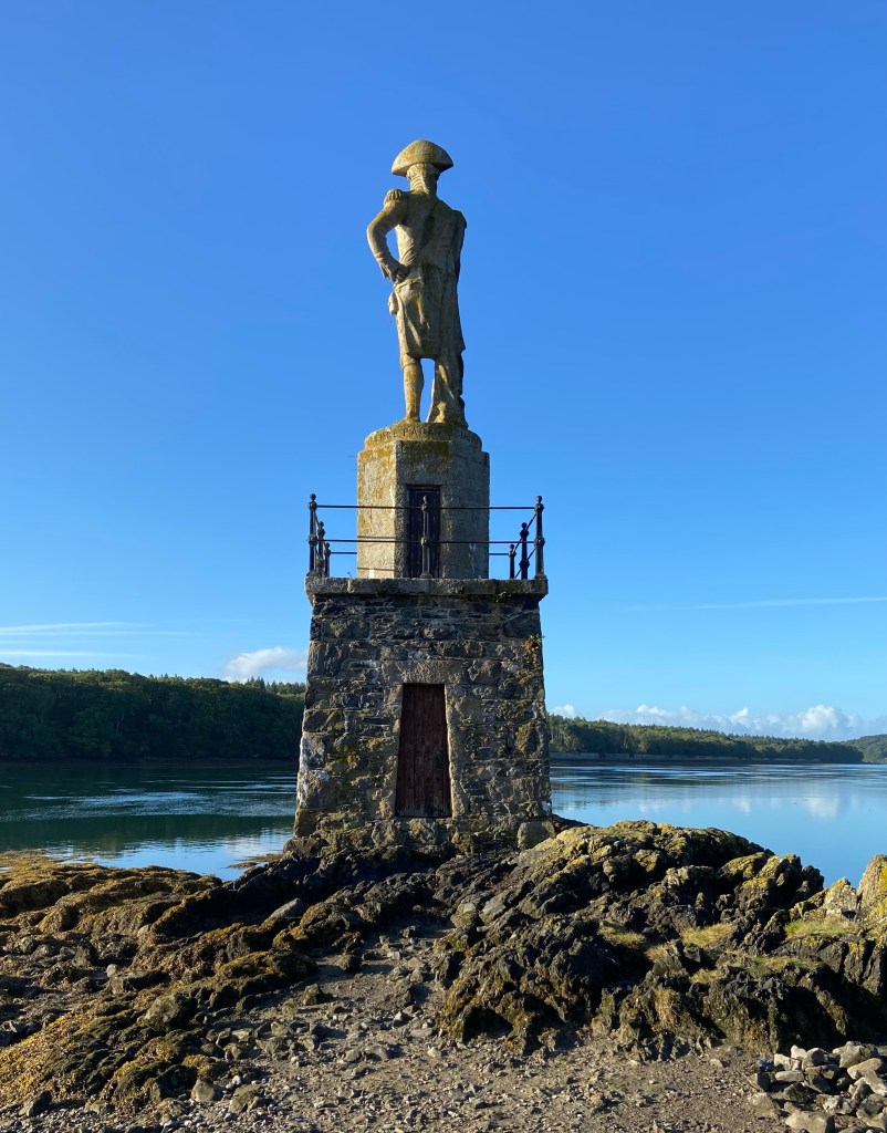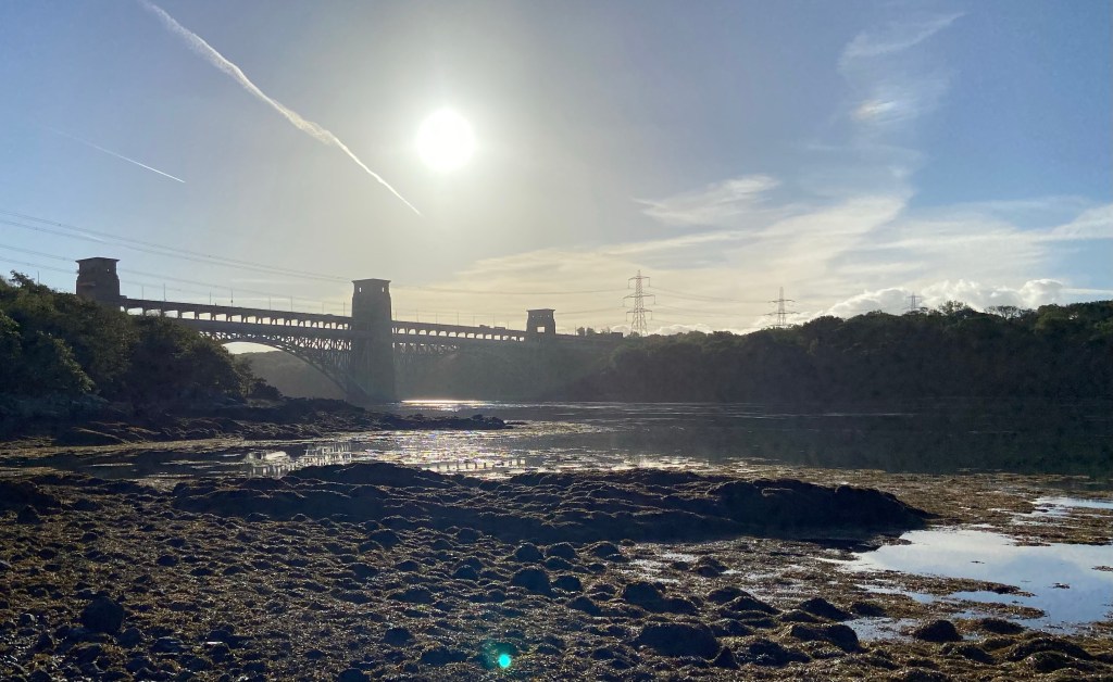 The closest point happens to be the statue of Lord Nelson (erected by Admiral Lord Paget, whose family seat is the nearby Plas Newydd), set spectacularly on a rock covered by water at high tide near the Britannia Bridge looking masterfully out over the Menai Straits.