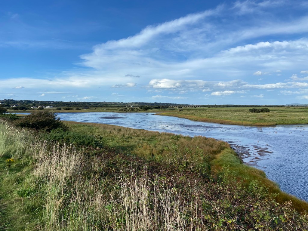 On paper today’s walk, at 28km, was going to be a long one. I passed that mark with Malltraeth still an hour away on the other side of the Avon Cefni’s huge estuary. I would have liked time to dawdle with the binoculars, identifying wading birds and filling my eyes with the waterland, but I was just focusing on walking steadily to the end – at 32.6km significantly beyond the notional 24km into which I had tried to carve up each day. There had been no shortening today, though, except radically, by finishing before the Newborough section. And I did muster up enough energy to ask a chap with likely-looking binoculars what the wading birds were. Black-tailed godwit. Handsome creatures.