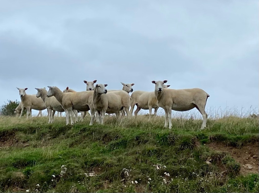 Hilary and Paul and their silky-eared dog Sidney Sprocker were genial company for the last couple of kilometres to the point, making light work of the last few fields.