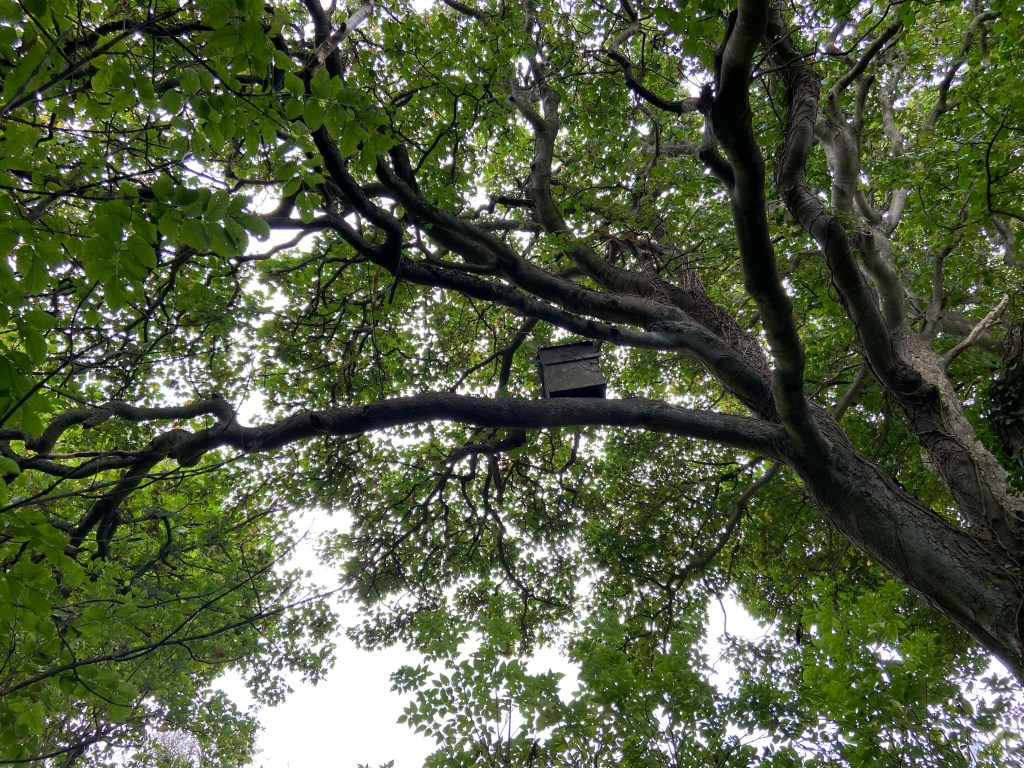 As I left the glade I noticed above my head a red squirrel nest box high up in a huge and beautiful mature sycamore – perhaps the squirrels are themselves the genii here.