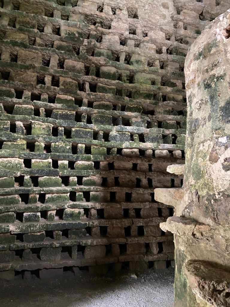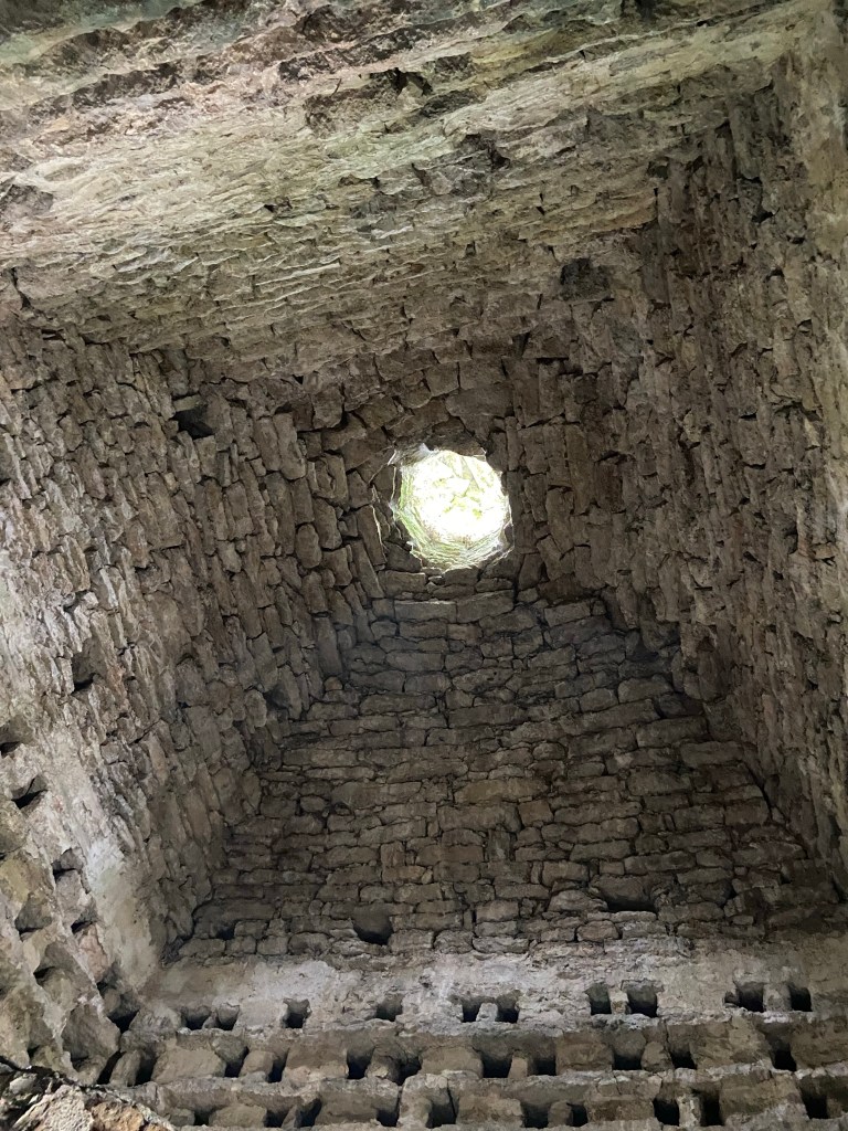 Inside there are nesting holes for about 930 pigeons who could fly in and out through the circular hole right up high in the corbelled roof.