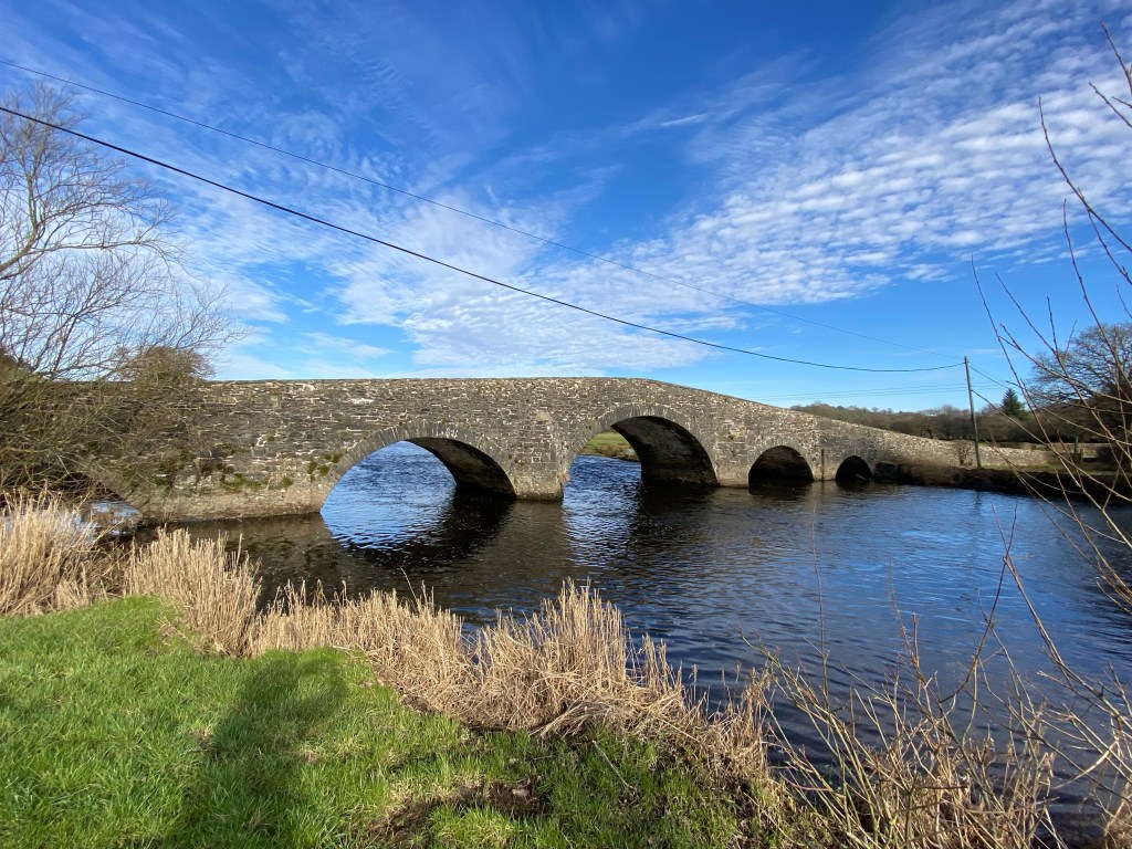 It wasn’t until midday that I reached the Teifi at Pont Godoyan, a grade 2 listed bridge the stone piers and graceful arches of which span the river, now very much more stately as it meandered through its floodplain. A solitary curlew called in a field. A swan and an adolescent cygnet paddled silently upstream, and a heron lumbered its ungainly way down the river from me as I crossed, disappearing away round a bend.
