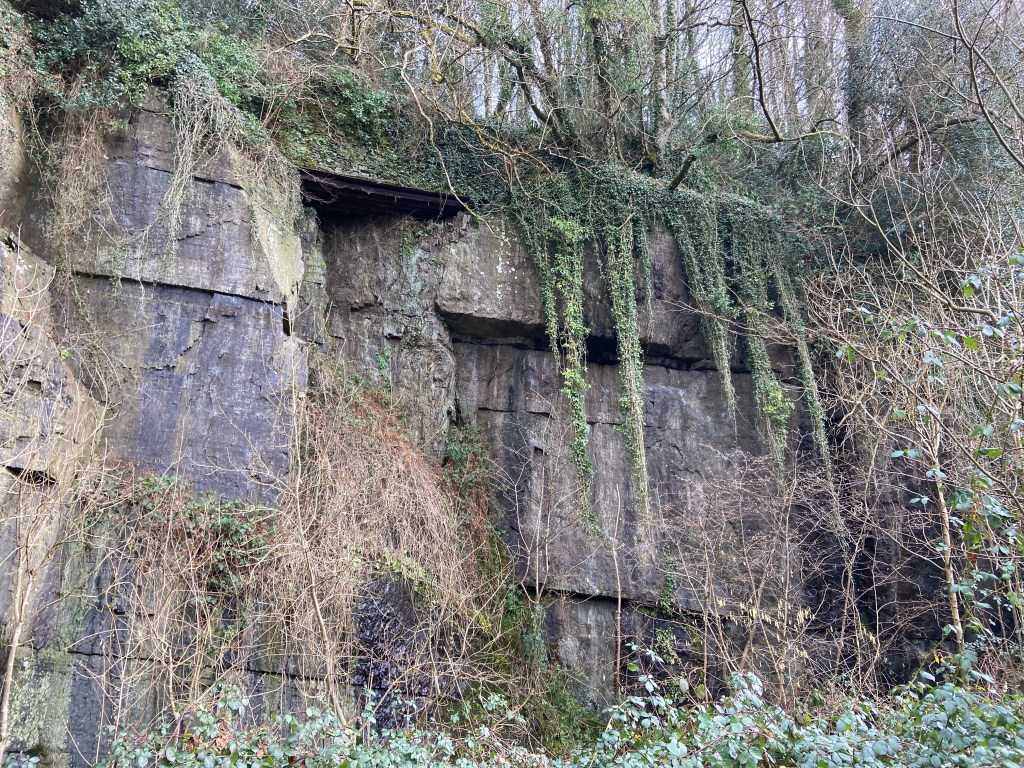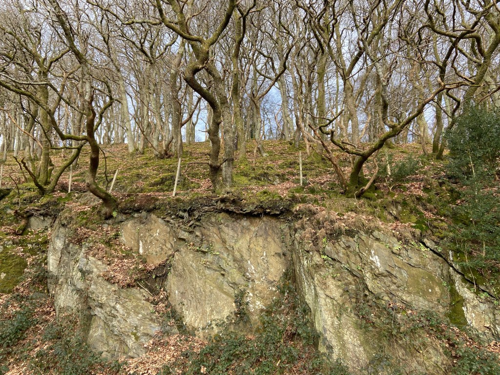 deep tricksy channels carved into the leaf-litter-covered shale mud underfoot, and this very fine and unusual dry stone wall: