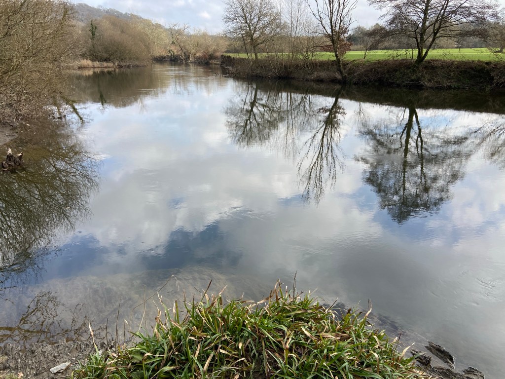 Where the most beautiful part of yesterday’s walk had been right at the start, today’s was squarely in the centre, a little stretch of mature beach forest which meets the river at Henllan.