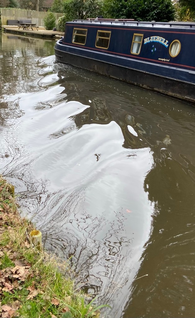The Bluebell left a crew clearing ditches at a junction and puttered along at no more than my walking pace, its bow wave like thick, green, melted caramel. Damage to the riverbanks by the bow waves and wakes of motorised vehicles are the reason for the ultra-slow pace, which is enforced by speed limits.