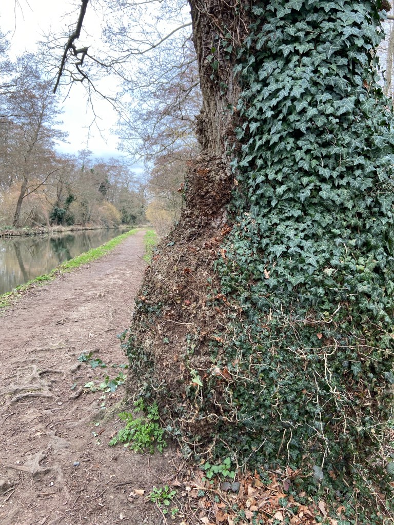 and the enormous bole of an Ivy-covered oak, its roots rising to the surface of the towpath.