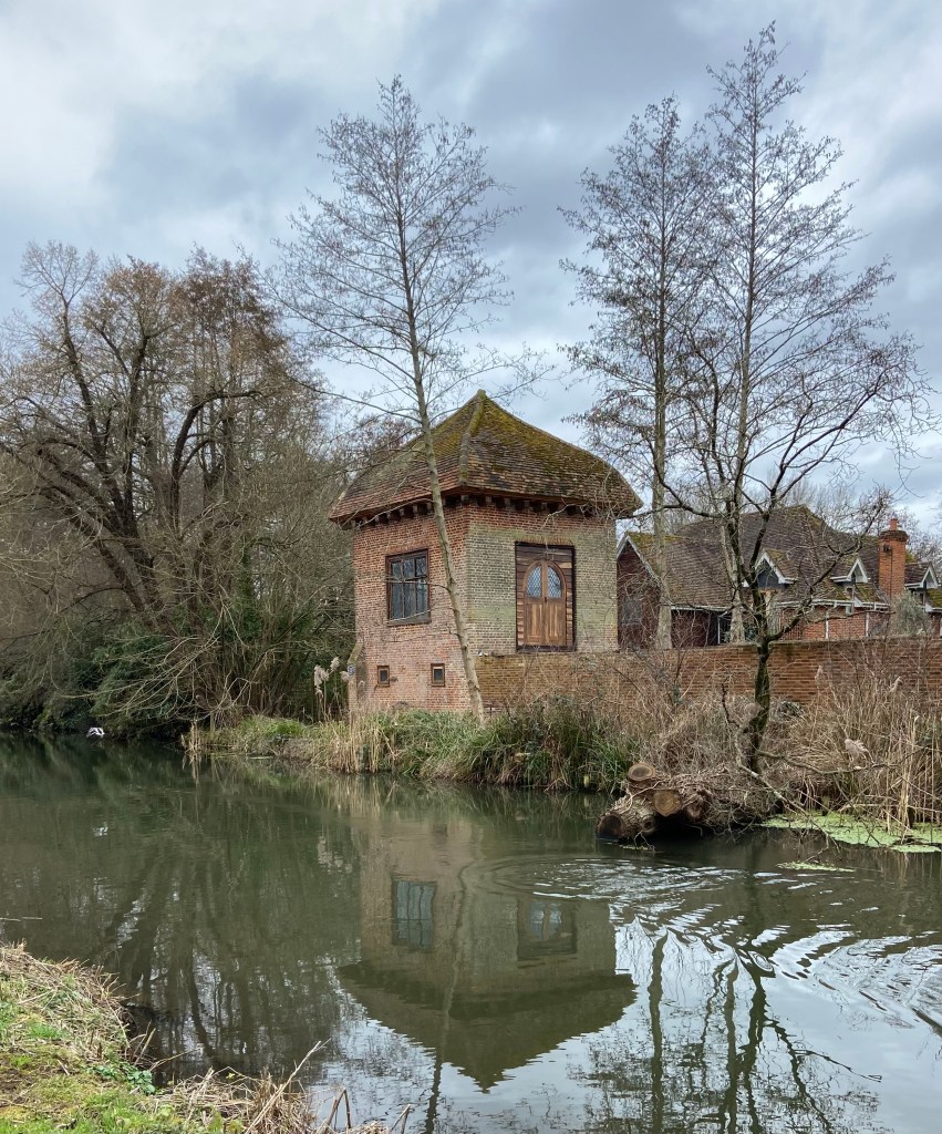 All thoughts of nutritional disappointment disappeared, though, when I unexpectedly came across a square brick tower with a distinctive ogee roof which I was sure was familiar to me. Had I seen it in a documentary about… ? I got my binoculars out of the pocket of my pack and trained them on the blue plaque affixed to the wall. Yes! This was the house where the poet John Donne had lived from 1600 to 1604, at the time he made his disastrously ill-judged marriage to Ann More without the permission of her father, which led to Donne’s incarceration in the Fleet prison. Once a reconciliation had taken place and Donne was freed, the couple was made welcome to stay here at Pyrford Place by its owner, Donne’s friend Sir Francis Wolley.