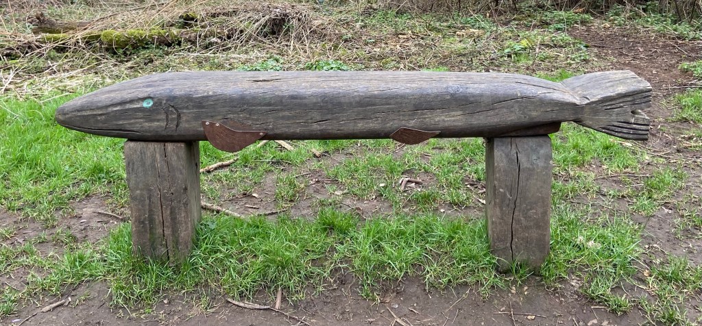 Three passers-by, out for a stroll, were overly-interested in a bench carved into the shape of a fish, and underly-interested, to my mind, in the tower. After offering to take a photograph of them all by the bench, I’m afraid I couldn’t help enlightening them with a short lecture. And after they had moved on, professing to be determined to look up some of his poems, I took a photo of the bench for good measure.