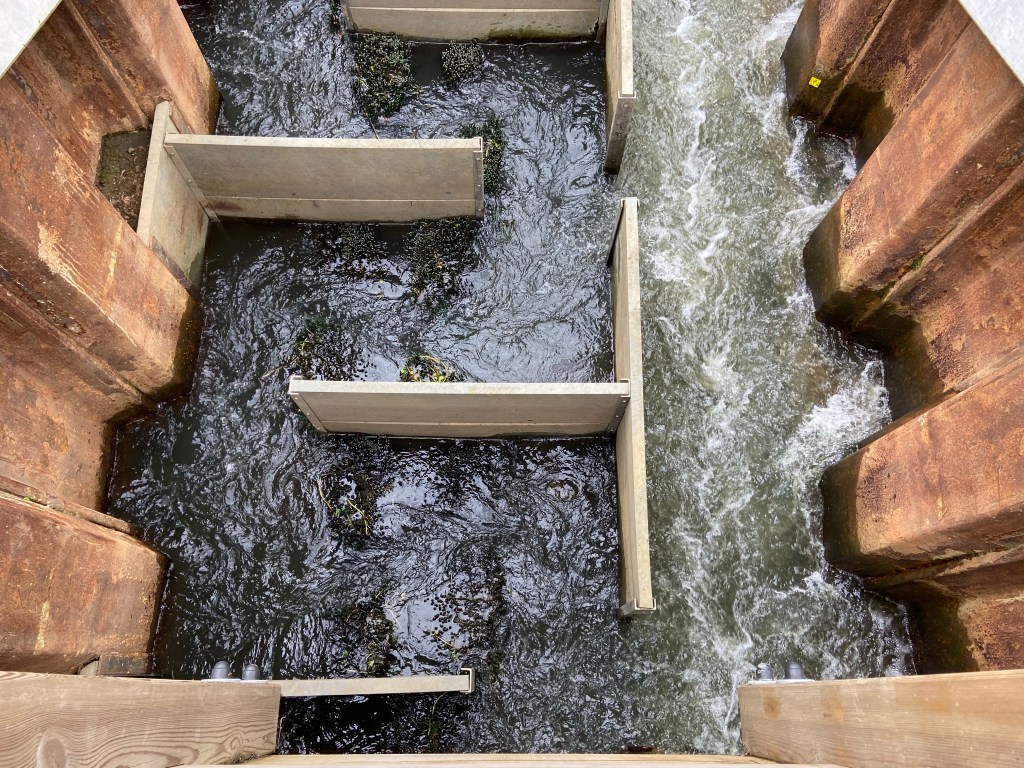 At Waltham Lock a £12m project is being carried out to create a chain of fish passes to enable eel, salmon and sea trout to migrate up the river to spawn. The weir is still there,