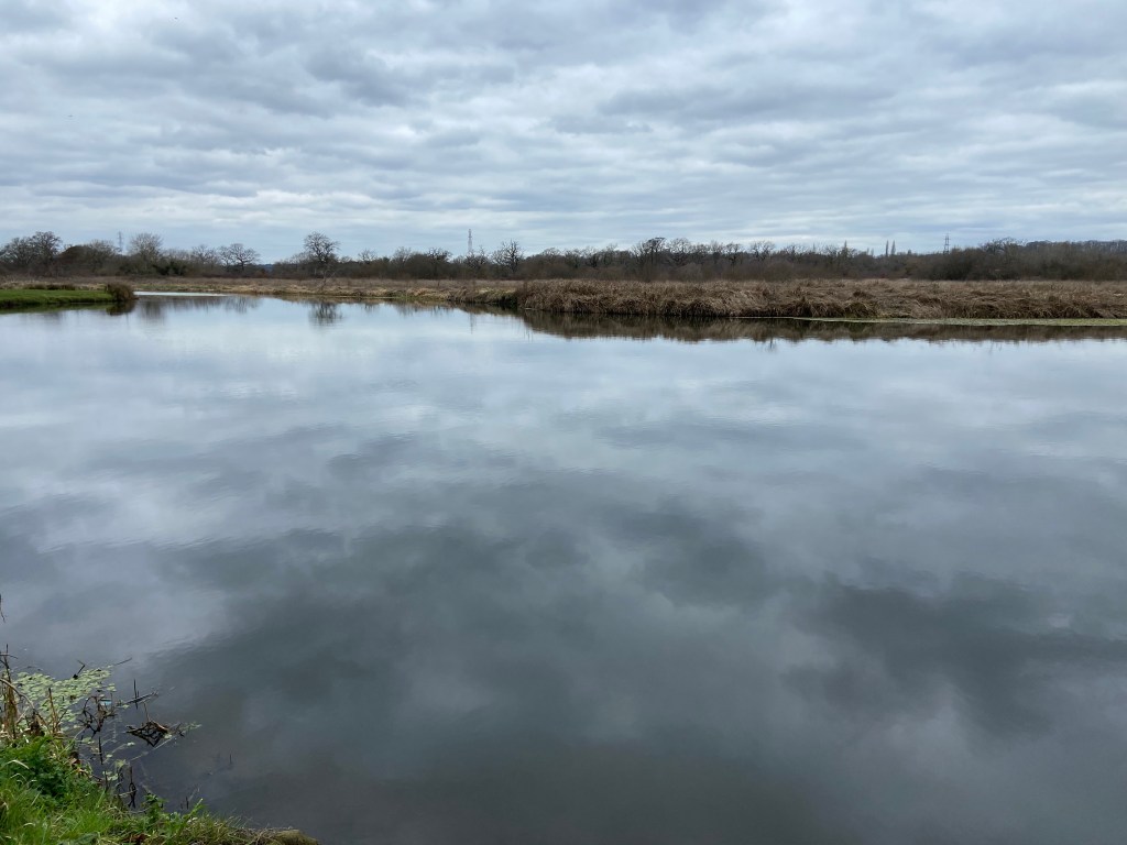 The reserve was right by the motel in Guildford where I was to stay the night. To get to the building I took a shortcut off the path through a winter wood, sad to see the remains of a camp where people had slept rough, a pop-up tent lying in the water, and shocked to see fly-tipped catering rubbish which looked suspiciously to have come from the Beefeater restaurant next door to the Premier Inn. In stark contrast to the pristine banks at the start and indeed for most of the day, here, human debris piled up. I was most definitely back amongst people now, and the start of tomorrow’s walk will take me right through the heart of this town.