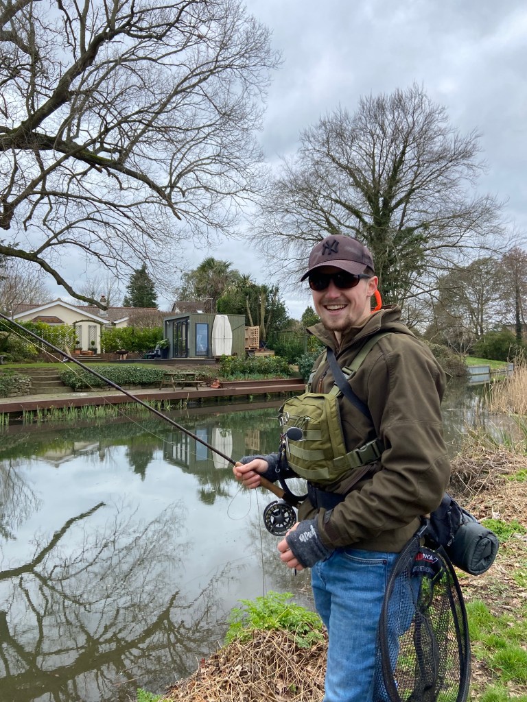John Jefferies was flyfishing in the Navigation. He had just caught and released a foot-long perch in the Broadmead Cut behind us, another channel running parallel to the main waterway, with the Wey river itself winding through its fenland half a kilometre away. “Like a perfect little crocodile, it was.“ John was fishing with an artificial bait shaped like a feathery black leech, which he made to dance through the water to catch the attention of the resting fish. He was taking a couple of hours break before going back into the workshop: “I make custom catapults” he said.