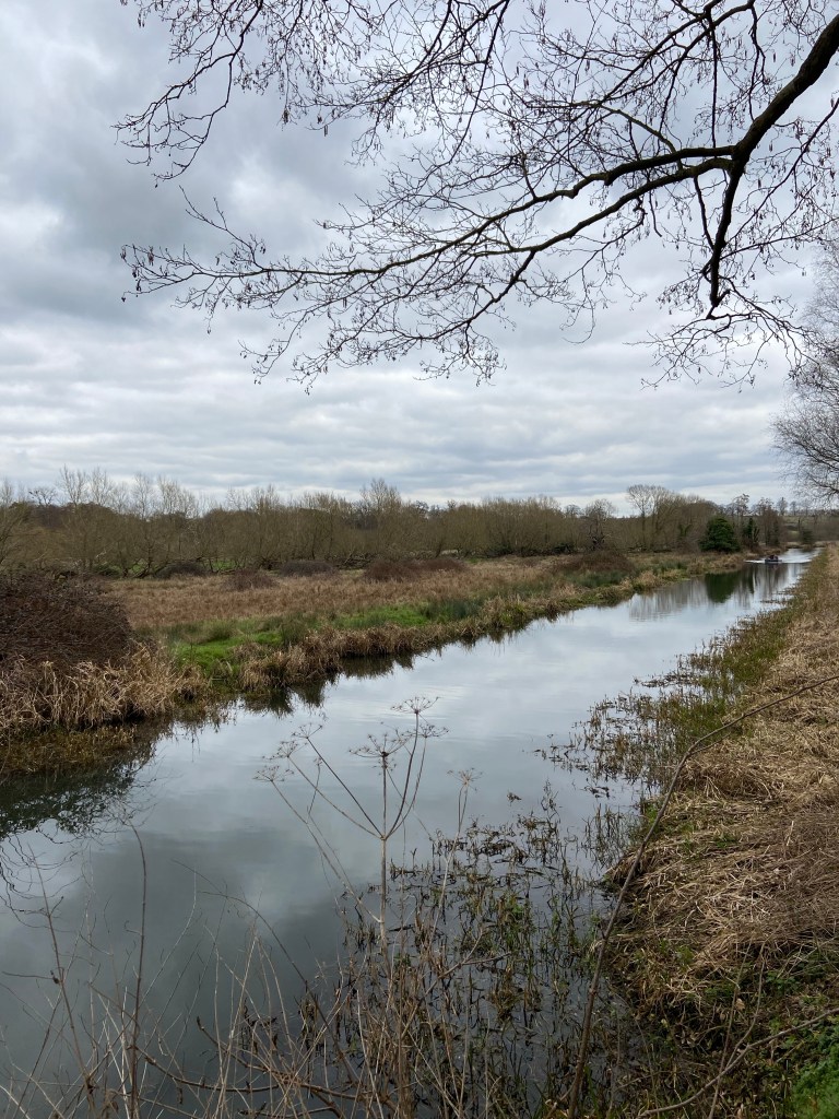 Immediately I left the concrete behind, nature returned. Choruses of blackbirds accompanied me, as though they were singing a part song on either side of the river. A little further on woodpeckers took over drumming different notes out of their oak trees. The willows dragging the tips of their hanging branches in the water were just starting to green up, and the first catkins on the ubiquitous willows were breaking through their protective buds.