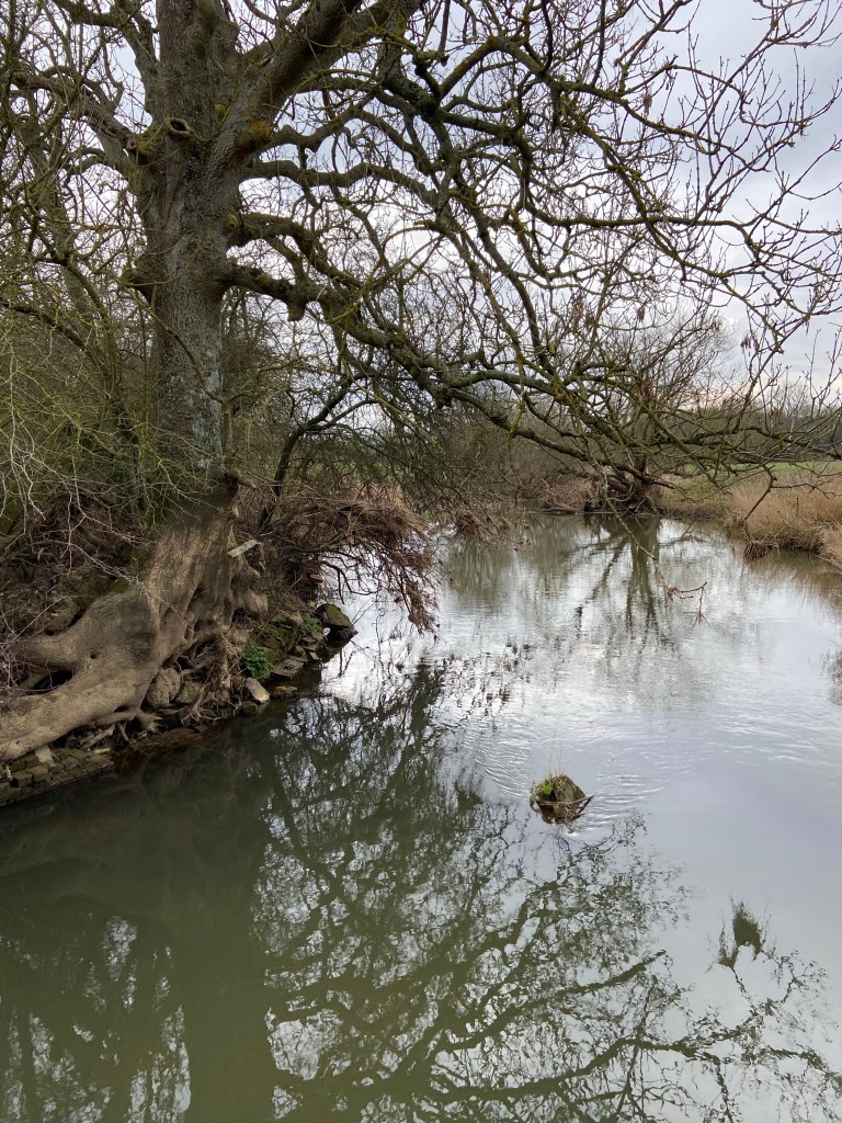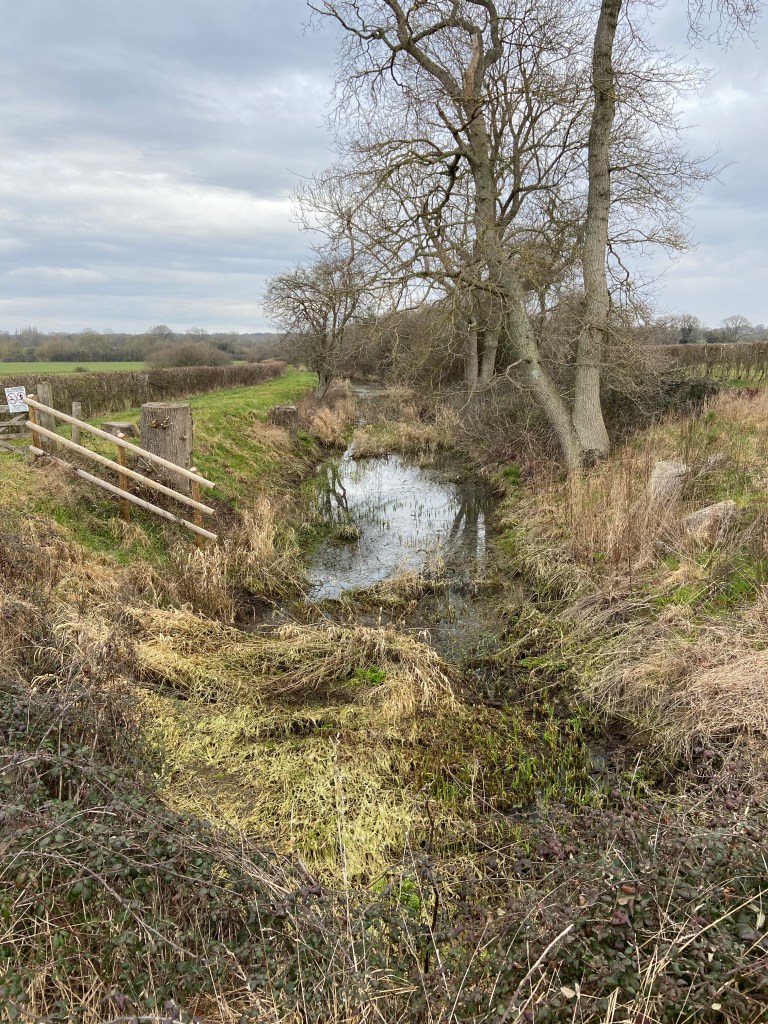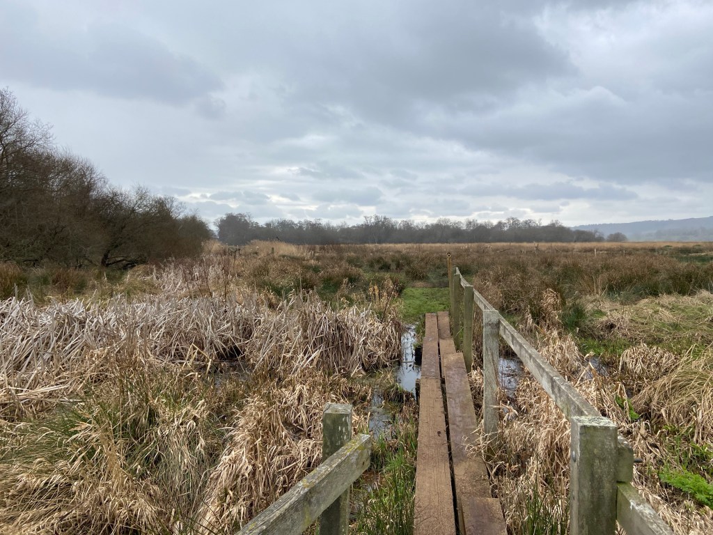 It is a sad fact that on an almost totally litter-free day so far (good! But also not good that it should be so unusual that I noticed), almost the only litter I saw (a beer can, an orange crate, and an entire car bumper) was heaved over the fence into the Waltham Brooks nature reserve to dismay the geese and lapwings. Quite beyond my comprehension. But just beyond that was Greatham Bridge, another medieval construction (1294), and another reminder of how important the river crossings were… there was Civil war battle here for control over this one.