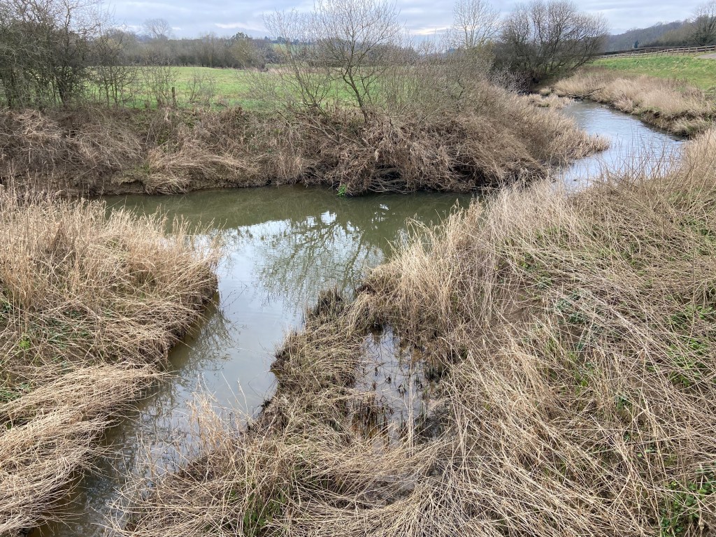I hadn’t noticed the switch in the direction of flow before, but it occurred to me now, that when the route swapped from the Wey to the Arun, I had started to follow a river meandering south to the sea, growing as it went, instead of tracking south on a dwindling one, which was flowing to North to the Thames. Mulling over this I could see evidence of these grand natural landscape engineering projects starting to happen on a very small scale, in a feels with a dried-up nascent mini-meander.