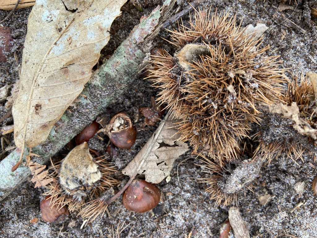 There were chestnuts too, in the plantation, its bark food for the local deer,