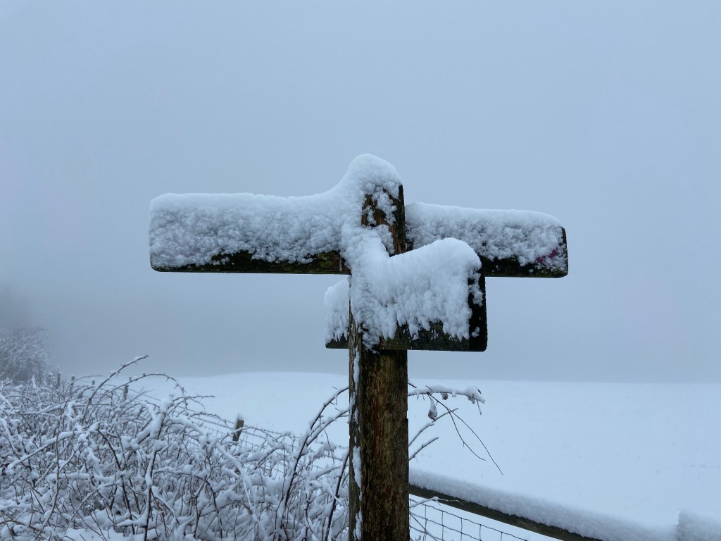It doesn’t pay to be spellbound, however, because signposts as well as yew branches can be obscured by snow. In deciding to forgo a detour to see the Devil’s Leap barrows, I missed the point at which the South Downs Way turned off the track, and I blithely carried on until I exited the wood completely and checked the map at a meeting of paths.