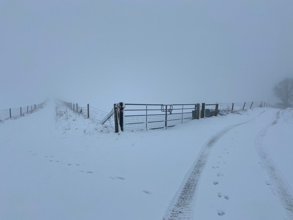 The hedges came to an end and fields opened out on either side of the track. Where normally there would be a view there was an eerie looming quality to the world.