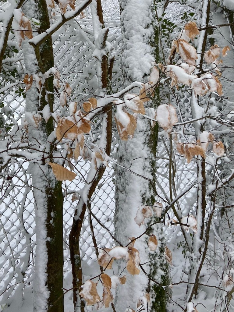 The whiteness of the snow seemed to create the forms of trees and branches out of negative space by drawing sweeping lines of wet, black bark.