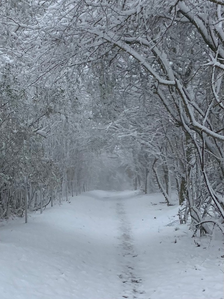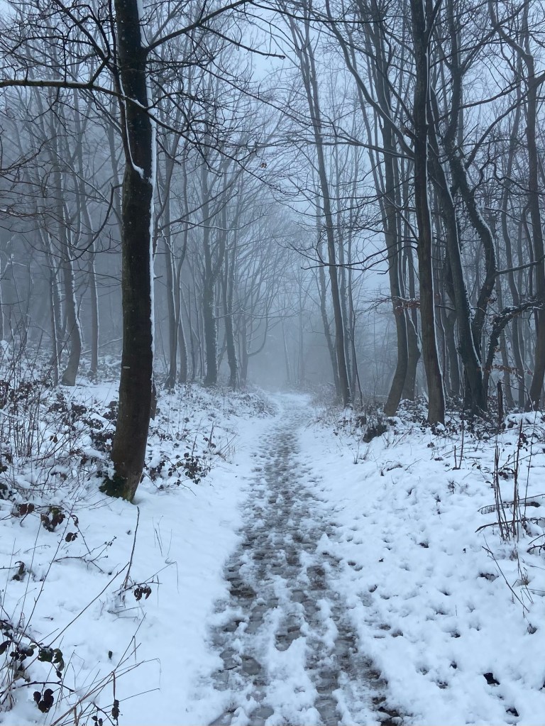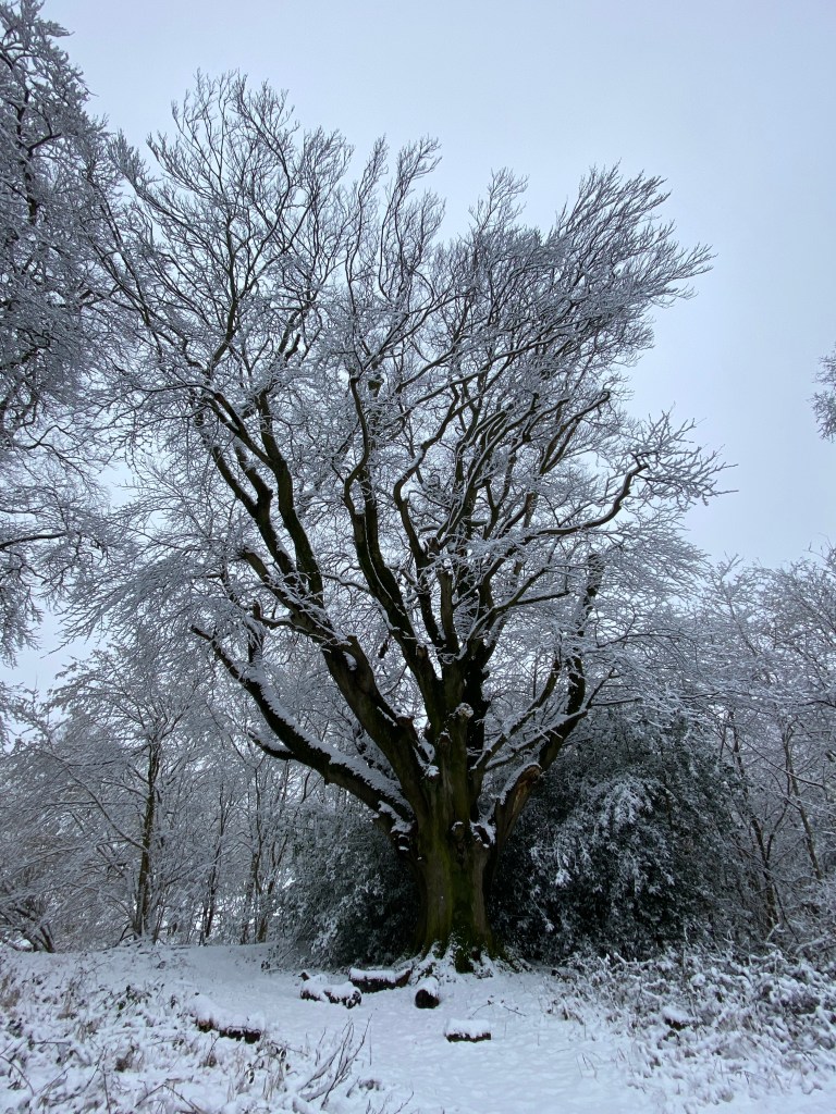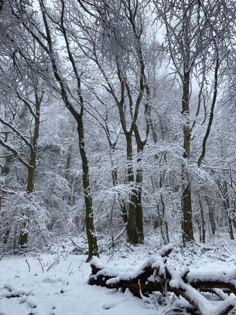 About an hour from the end of the walk where my path intersected with the Staunton Way and the improbably but beautifully named Milky Way, I passed a young Asian man walking the South Downs Way in the other direction wearing only trainers. They must have been completely sodden — if it wasn’t lakes of snowmelt on the ground it was thick slush. If it wasn’t slush it was mud. If it wasn’t mud it was snow; trainers weren’t suitable for any of those conditions. Mind you, I’m not sure my boots were that much better. Walking through thick slush is the same as walking through deep puddles, and I wouldn’t ordinarily choose to do that in walking boots.