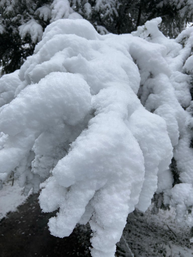 The snow was that extremely wet, sticky kind where the flakes clump together and then slump slightly to resemble blown foam.