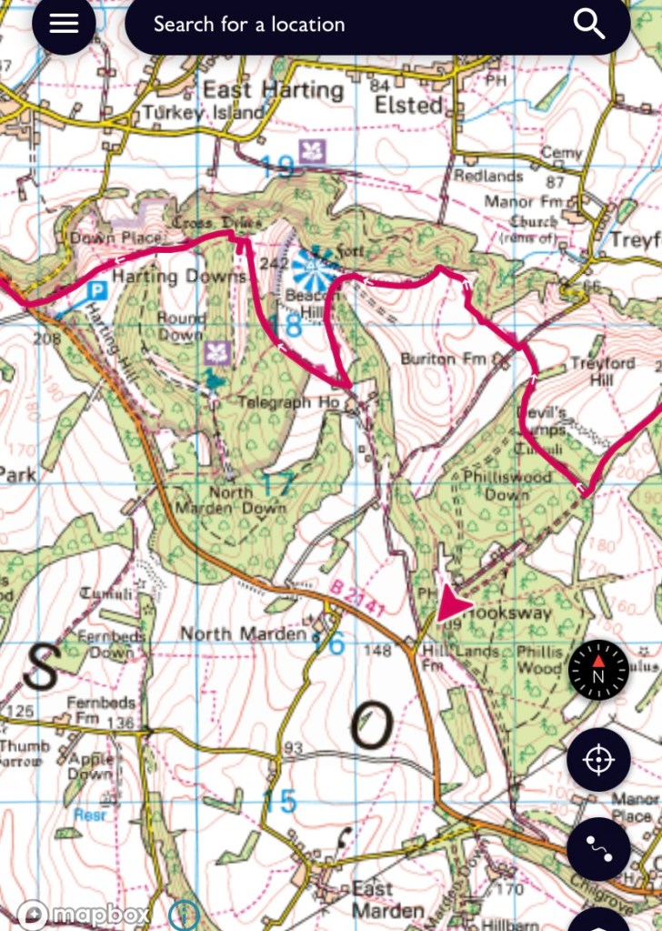 Rather than schlep back uphill I decided just to slog the 4km up the B-road, missing out an interesting section of the route — but rationalising to myself that Harting Downs would probably best be visited on a drier day in a different season.