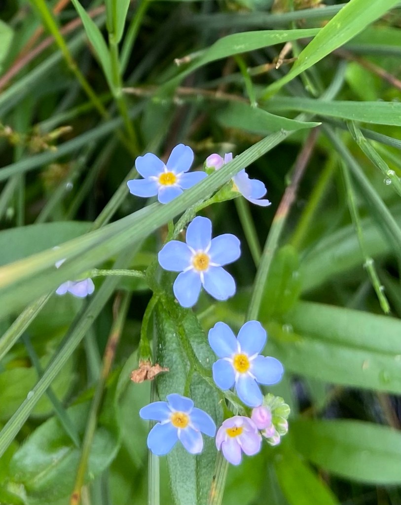 In fact, I soon had to stop to exchange my longsleeved top for a short one. On the bank some water forget-me-not was flowering,