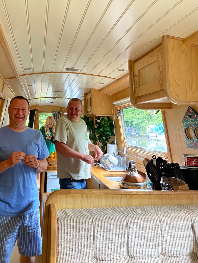 Before setting off on the 40-minute tunnelling adventure there were mugs of tea and a massive plate of bacon and sausage butties cooked by Andy in the galley, and a heap of laughter. Warwick Davis had been on the boat a few days ago (a roundabout family connection) — so Stevie and Andy’s guest list is an exalted one!