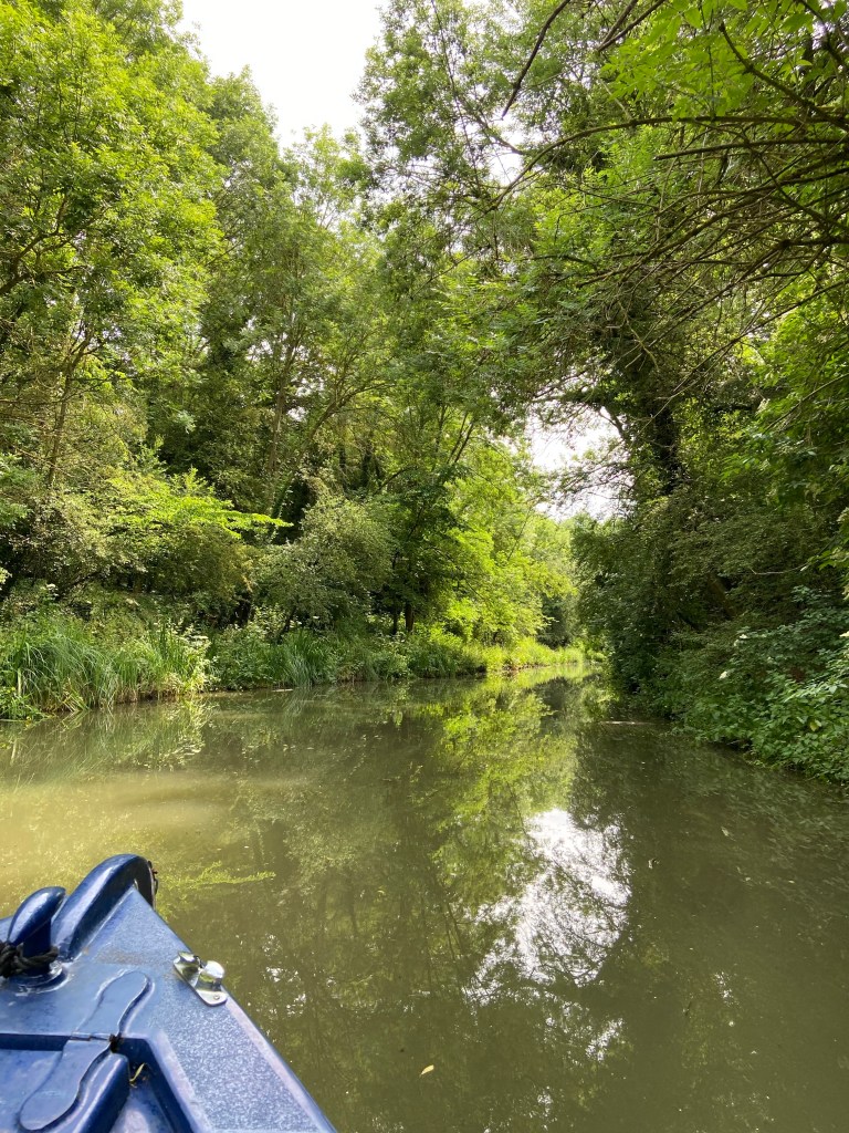 If the canal is beautiful from the bank, it was indescribable from the water. ‘Round the corner it looks just like the Amazon,’ said Stevie. And he was right: cool and green and peaceful, the canal water seemed to slip creamily past the boat and the reflections of the vegetation in the water made it look as though we were suspended in a wraparound tunnel of greenery.